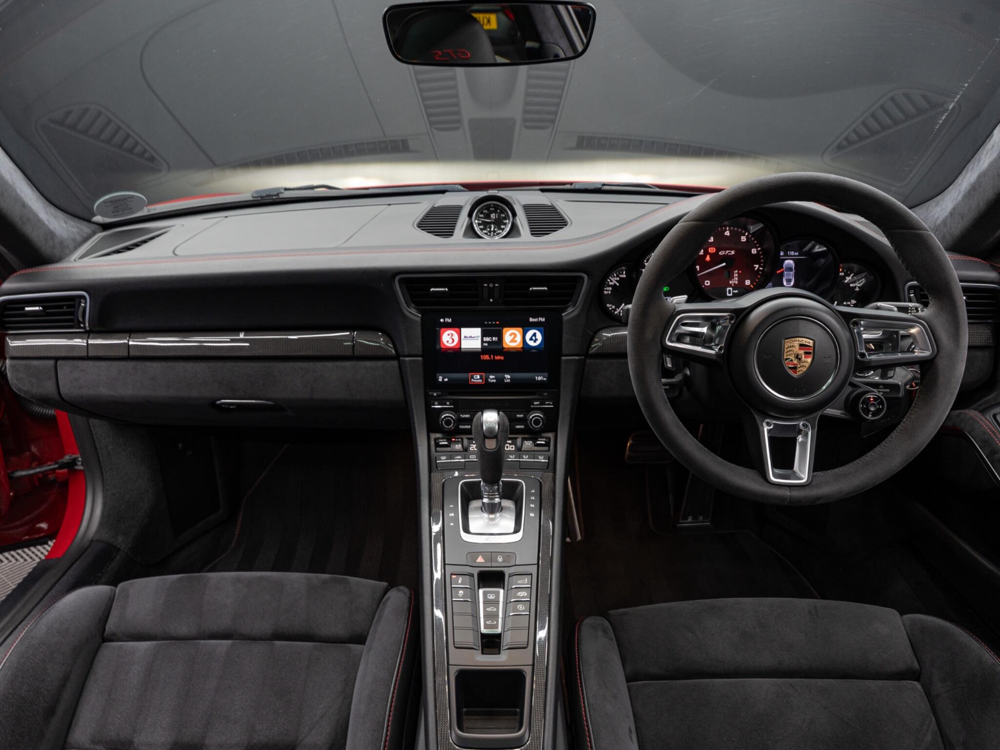 Carmine Red Special Paint, GTS Alcantara Package With Carmine Red/Rhodium Silver Contrast, Slide/Tilt Panoramic Glass Sunroof, Adaptive Sports Seats Plus (18 Way), BOSE Surround Sound System, Park Assist (Front & Rear), Privacy Glass, 20" 911 Turbo S Alloy Wheels In Black, Cruise Control, LED Main Headlights In Black Including PDLS, Porsche Active Suspension Management Including Ride Height Lowered by 10mm, Carbon Fibre Interior Trim, Sport Chrono With Mode Switch, Switchable Exhaust System, Rev Counter In Red, Full Porsche Service History, Porsche Warranty Until March 2027